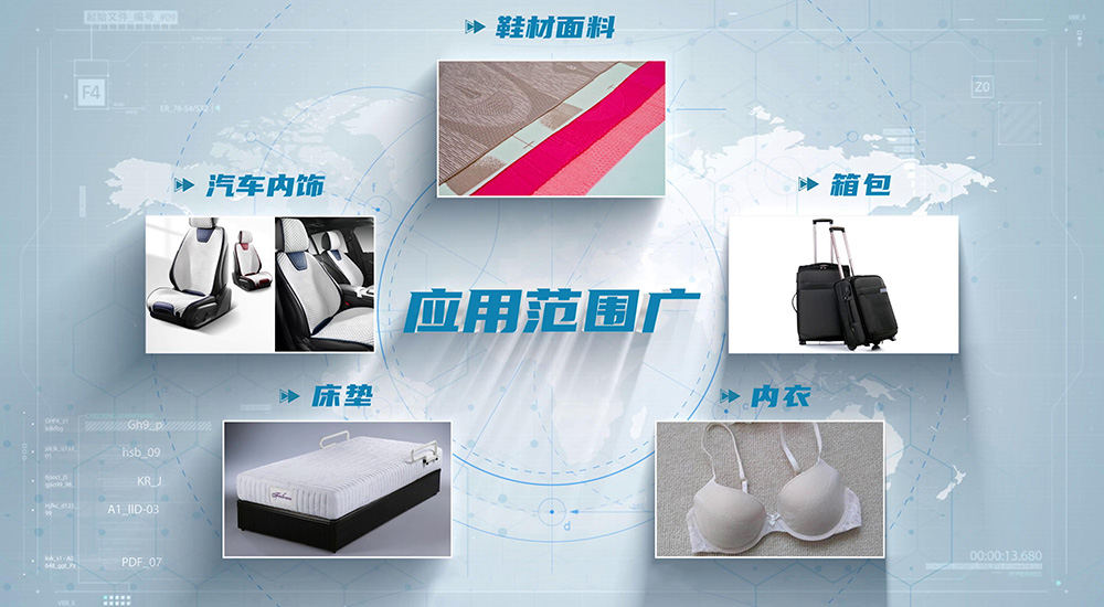 雙針床經(jīng)編機(jī)的主要織物類型包括3D間隔類、間隔提花類、毛絨類、內(nèi)衣類、圓筒類等類型織物。適用于應(yīng)用于家具、家紡、嬰童、醫(yī)療、戶外運(yùn)動(dòng)、汽車、環(huán)保等八大行業(yè)。在鞋材、箱包、手袋、汽車裝飾、服裝面料里料、床墊、坐墊、靠墊、戶外用具等方面得到廣泛的應(yīng)用。