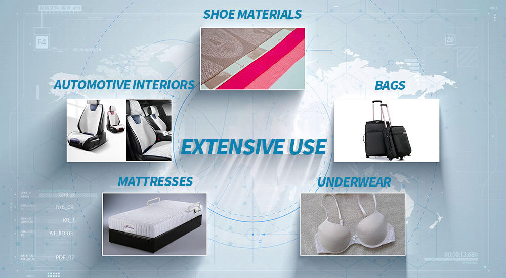 The main fabric types of double needle bed warp knitting machine include 3D spacer, spacer jacquard, fleece, underwear, cylinder and so on. It is suitable for furniture, home textile, baby, medical, outdoor sports, automobile, environmental protection and other eight industries. It is widely used in shoe material, luggage, handbag, car decoration, clothing fabric material, mattress, cushion, cushion, outdoor appliances and so on.